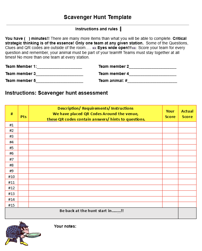 - See the example of our scavenger hunt question sheet