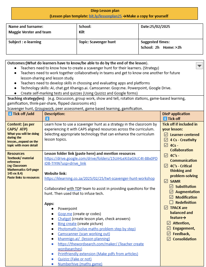 Step 2: Start with your lesson plan and scavenger hunt template