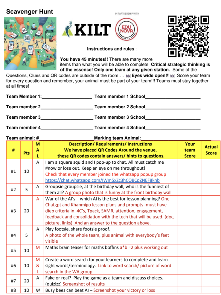 During our scavenge hunt workshop you have experienced the magic of a scavenger hunt for learning and teaching. Now it is time to create your own learning hunt using your own lesson plan material. But you do not have to do this on your own! This is also the perfect opportunity to collaborate with: