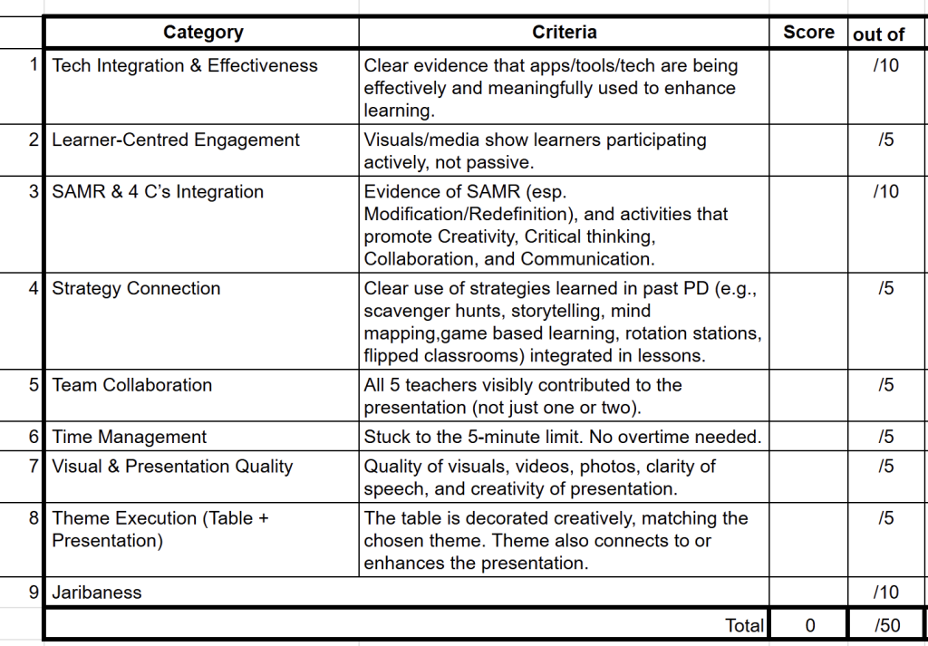 It is time to showcase our achievements at our bi-annual Teachmeet, and we are looking forward to seeing what all our DIeP teachers have been doing with technology in their classrooms. This event is a compulsory target event for all our DIeP teachers, so please make sure that you bookmark the date and RSVP. Attendance is worth 200 points towards our e-learning leader board, so book now!