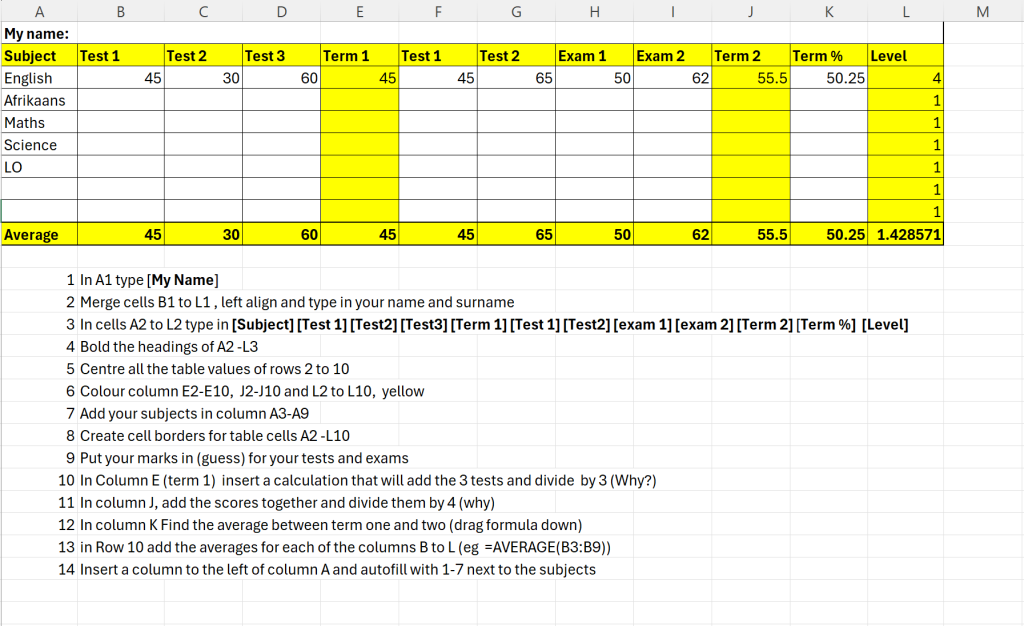 1. Save it in your POE folder with the file name Matric Dance Budget_YournameYoursurname.xlsx e.g. Matric Dance Budget_MaggieVerster.xlsx.