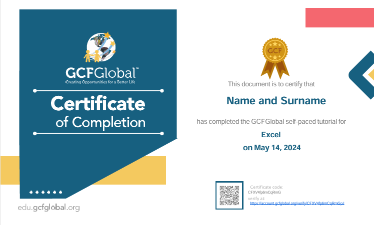 - Save it in your POE folder with the file name excelbadge_YournameYoursurname.pdf e.g. excelbadgeMaggieVerster.pdf. (Upload your certificate to your school (teacher) folder (ask your ITE for the POE link).
