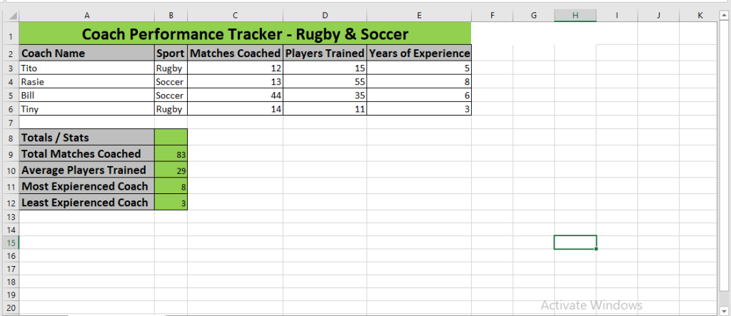| Coach Name | Sport | Matches Coached | Players Trained | Years of Experience |