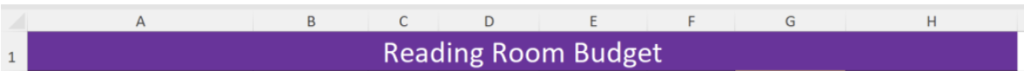 • In Cell A1, type: Reading Room budget