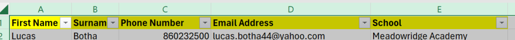 • Change column size to fit or wrap the headings to fit. (drag the handles at the top between the letters).