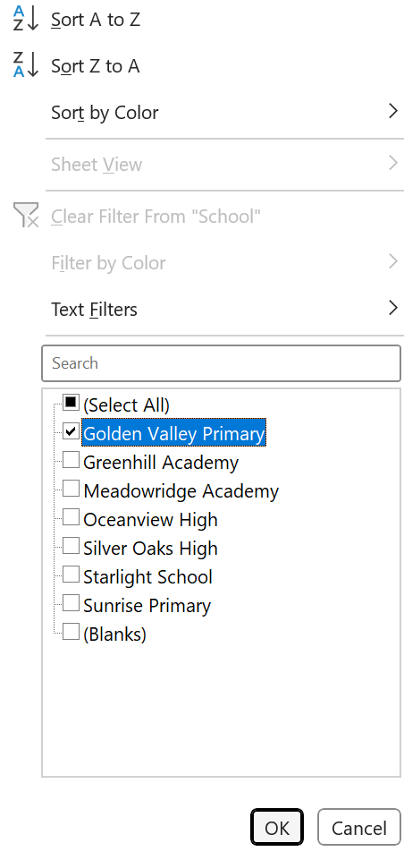 • Now try sorting for Schools
