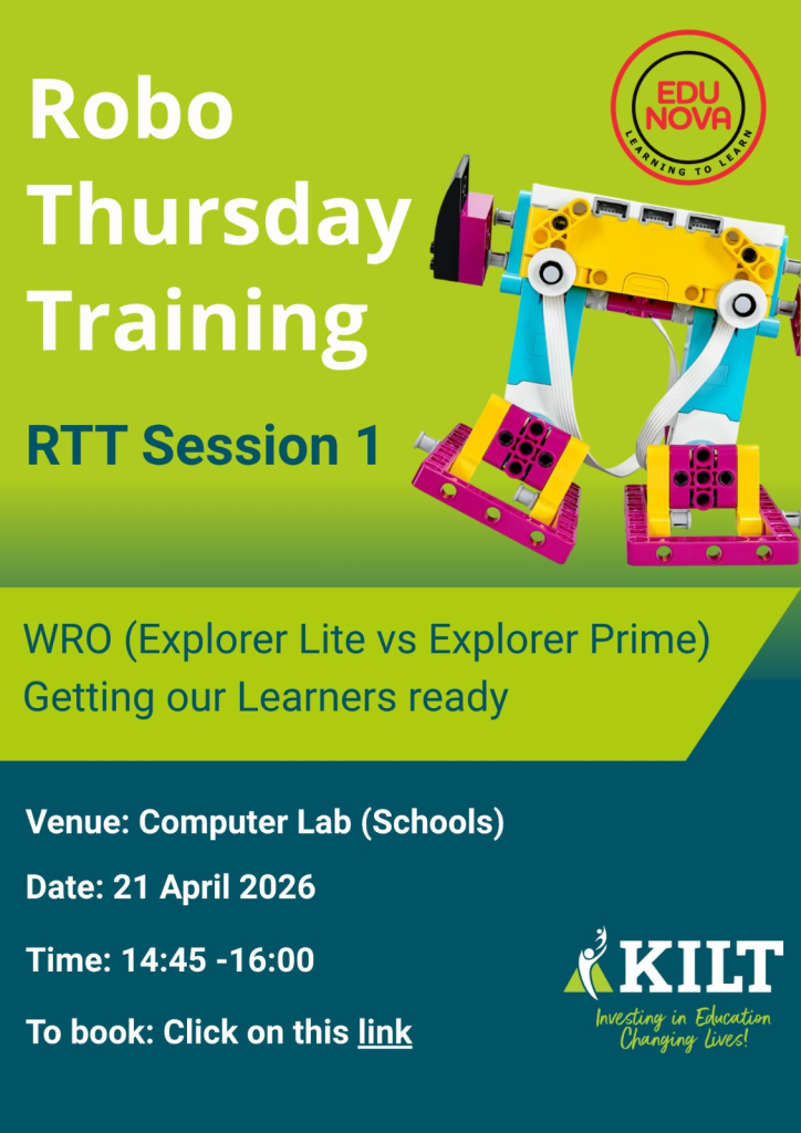 If you are facilitating robotics and coding at your school this year, this session is for you. Come and find out what WRO Explorer is all about, what your Grade 8 learners need to do before 16 May, and experience the challenge yourself.